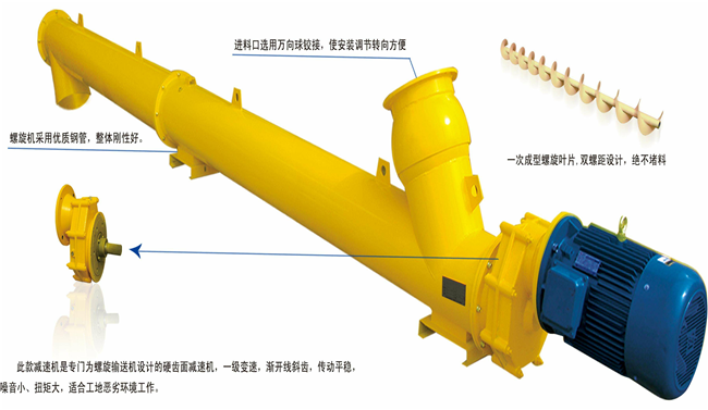 1、是由專用齒輪減速電機裝置與外殼管,螺旋總成依次相連,結(jié)合成一臺整套設(shè)備,移動、拆裝十分方便。