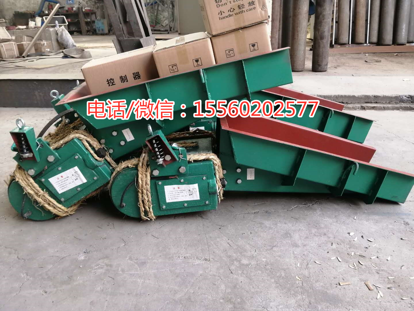 孟經理您訂購的GZ4號電磁振動給料機已經生產完畢。另外您要求的多配4個吊簧我們也給咱配好了。電磁振動給料機發的是韻達快運。電磁振動給料機料槽尺寸500*1100(寬*長),產量一小時50噸/小時。電磁振動給料機電壓220v。整機重量460Kg,請你收到貨以后確定一下。有問題了隨時聯系我。