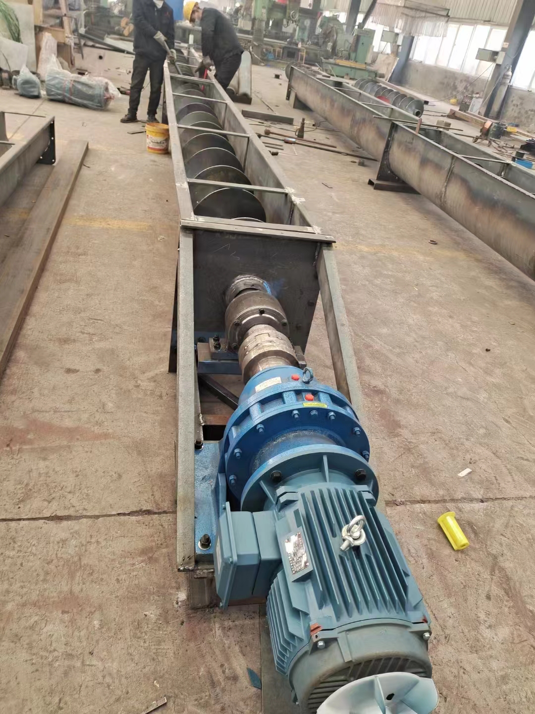 今天接到電話。洛陽一個客戶咨詢我們螺旋輸送機。客戶輸送的物料煤粉。輸送量不大。我們的技術給客戶設計了一臺U型螺旋輸送機。型號:LX250-7米螺旋輸送機,客戶要求輸送距離是7米長。我們技術設計的箱體總長7.5米。輸送機箱體的板厚3mm、電機配的是4KW電機。減速機是BWD-2型。歡迎有需要的客戶來電咨詢我們。聯系電話:15560202577(同微信)
