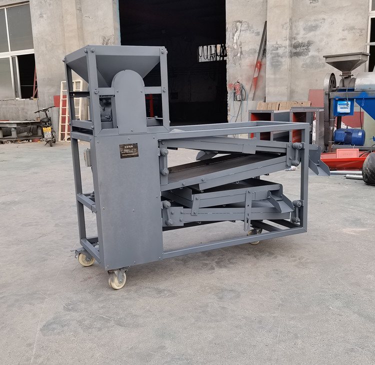陜西是花椒的種植基地,花椒成熟以后都是椒農(nóng)們手工采摘的。花椒采摘下來都是一串一串的。采摘下來的花椒先經(jīng)過烘干,烘干后的花椒經(jīng)過篩選機進行篩分。篩選機進料口裝有打碎裝置,先把花椒打碎,然后花椒落在篩網(wǎng)上進行篩分。花椒篩選機頭層篩網(wǎng)可以把大的梅花椒篩選出來。花椒可以通過層層篩網(wǎng)進行篩分。花椒篩選機篩選凈度可以高達98%。